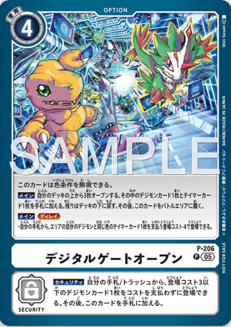 【安全區】從我方手牌/廢卡區中,1張登場消耗值3以下的數碼寶貝卡不需耗費消耗值即可登場。之後,將這張卡片加入手牌。